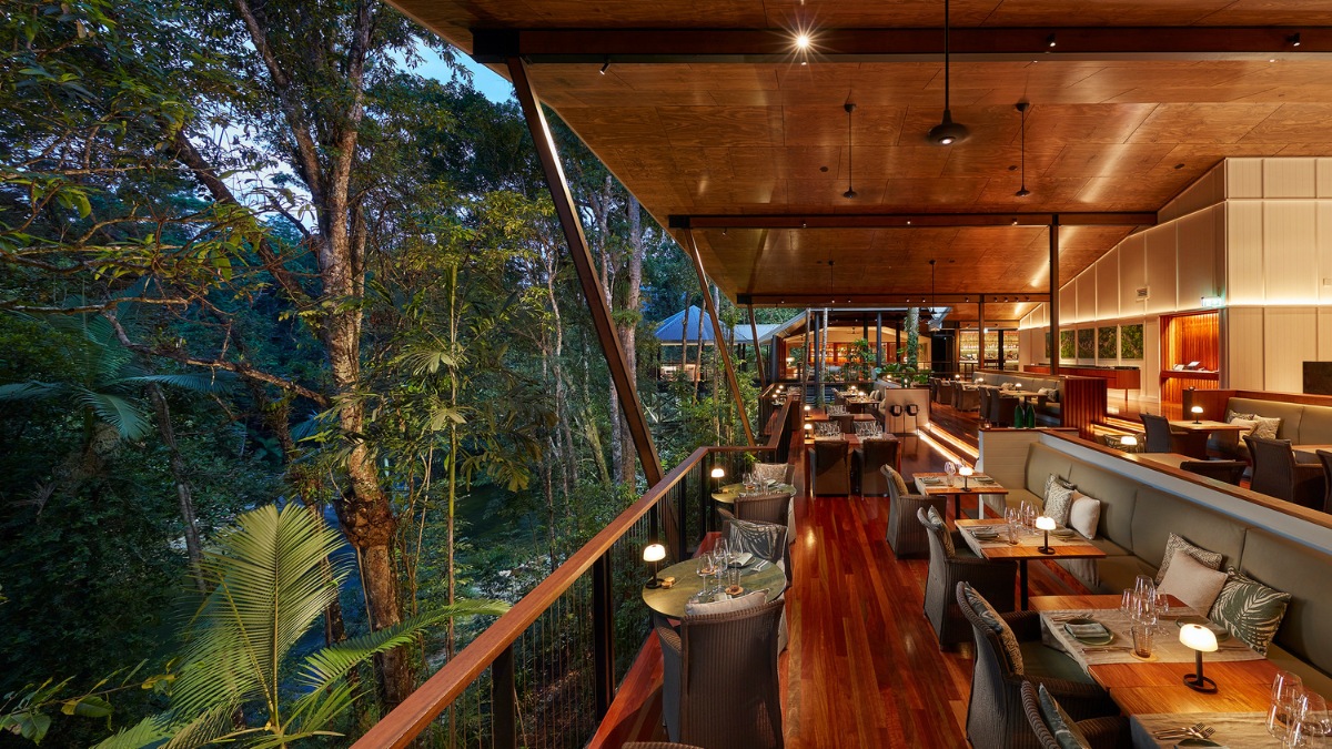 Guests can explore the Daintree with expert guides, swim in clear river pools, practise yoga in open-air pavilions, or enjoy the renowned Healing Waters Spa, a highlight for many. Dining at the Treehouse Restaurant brings refined, regionally inspired cuisine to an elevated setting above the river.