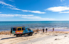Unveil the wonders of Francois Peron National Park on this unforgettable 4WD adventure! Nestled on the tip of the Peron Peninsula in Shark Bay, it offers a captivating blend of history, wildlife, and breathtaking scenery. Follow in the footsteps of French explorer Francois Peron as your expert guide leads you through iconic red sand dunes in a comfortable 4WD. Look out for unique wildlife – from the prehistoric-looking Thorny Devils and echidnas. Take a refreshing dip at Bottle Bay and snorkel and search for the graceful sharks and rays gliding in the crystal-clear shallows.