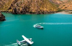 Experience the beauty and wonder of the incredible Horizontal Falls and pristine scenery of the Kimberly on your half day tour. First you will enjoy flying over the amazing islands of the Buccaneer Archipelago and Cape Leveque, before your seaplane touches down in the calm waters of Talbot Bay. You will then board your boat and cruise over the top of the exhilarating Horizontal Waterfalls and enjoy a relaxing cruise, followed by a shark display and swim in a marine viewing enclosure. You will also stop to enjoy a cooked meal on board the floating dining pontoon, before soaring back to Broome on board the seaplane.