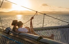 Sit back and unwind as the sun slowly sets over the horizon aboard our purpose-built catamaran. Cruising through the tranquil, sheltered waters surrounding Hamilton Island, this leisurely sail offers an idyllic opportunity to soak in the stunning views of the island’s coastline and beyond. As the golden hues of sunset paint the sky, you’ll have plenty of time to relax, take in the serene surroundings, and experience the beauty of the Whitsundays in absolute comfort and style. It’s the perfect way to escape and enjoy the natural splendour of this breathtaking location.