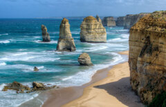 The first part of your drive today will take you to the iconic Twelve Apostles, perhaps the most famous landmark on the Great Ocean Road, and stopping here is a must. You can park at the carpark and follow the paved path to the lookout, or to take some time and stretch your legs take the path down Gibson's steps to the beach. Descending these 86 stairs carved into the cliff face, and reaching the beach you are treated to a closeup view of these incredible rock formations. 3 minutes further along what is known as the Shipwreck Coast, you will find the stop-off point for Loch Ard Gorge, a glistening inlet of striking blue water surrounded by sheer sandstone cliffs. Beyond the town of Port Campbell, stop at the London Bridge and The Grotto for more stunning sights and photo opportunities.