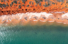 Broome is a coastal tourist town and a gateway to the tropical Kimberley region. It is situated on the traditional lands of the Yawuru people, and nowadays, it is a multicultural melting pot. You can visit stunning Cable Beach, laid-back breweries, pearl boutiques, and experience activities ranging from diving, kayaking, cultural guided tours, and unhurried camel rides. From March to October, when the moon is full, use your imagination to witness a staircase to the moon reflected in the mudflats of Roebuck Bay. Broome also has fascinating wildlife; if you're lucky, you can spot a rare bottlenose dolphin, as well as turtles, dugongs, or even a manta ray. The region is also famous for crocodiles, and you can meet them safely with experts at Malcolm Douglas Crocodile Park.